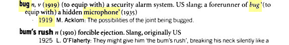 Why people call TSCM “Bug Sweeping” services, is a topic of debate, but one theory is that the term dates back to World War One. The word “Bug” made its first appearance in 1919: (to Equip with) a security alarm system. US slang: a forerunner of bug ‘(to equip with) a hidden microphone’. Src: 20th Century Words